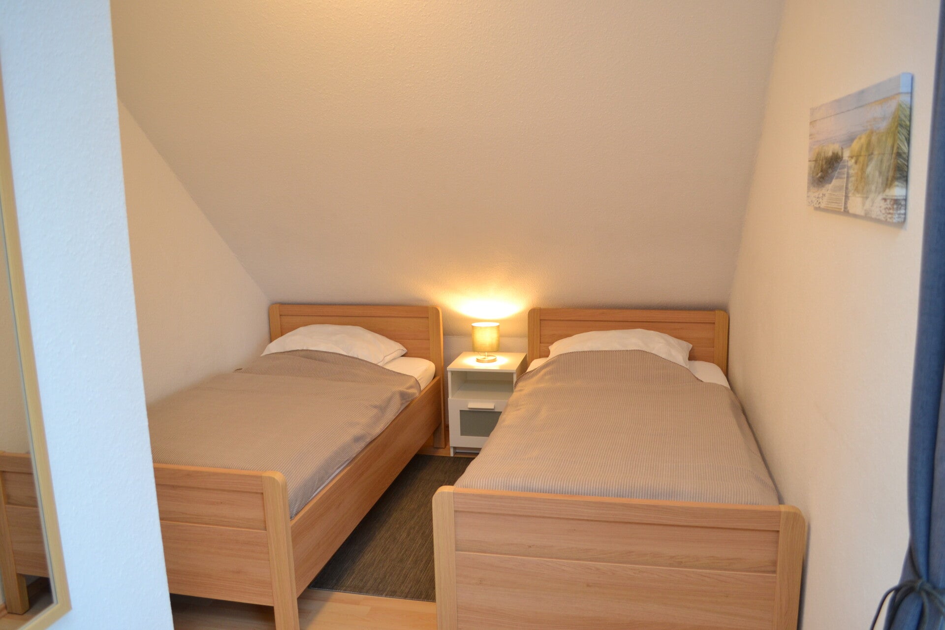 Im Erdgeschoss erwartet Sie ein Wohn- und Essbereich, Küche und eine Gästetoilette. Im Obergeschoss befinden sich zwei Schlafzimmer (1x Doppelbett + Kinderbett, 1x mit 2 Einzelbetten + Schlafsessel) sowie ein helles Badezimmer mit Duschkabine, WC und Waschmaschine.
